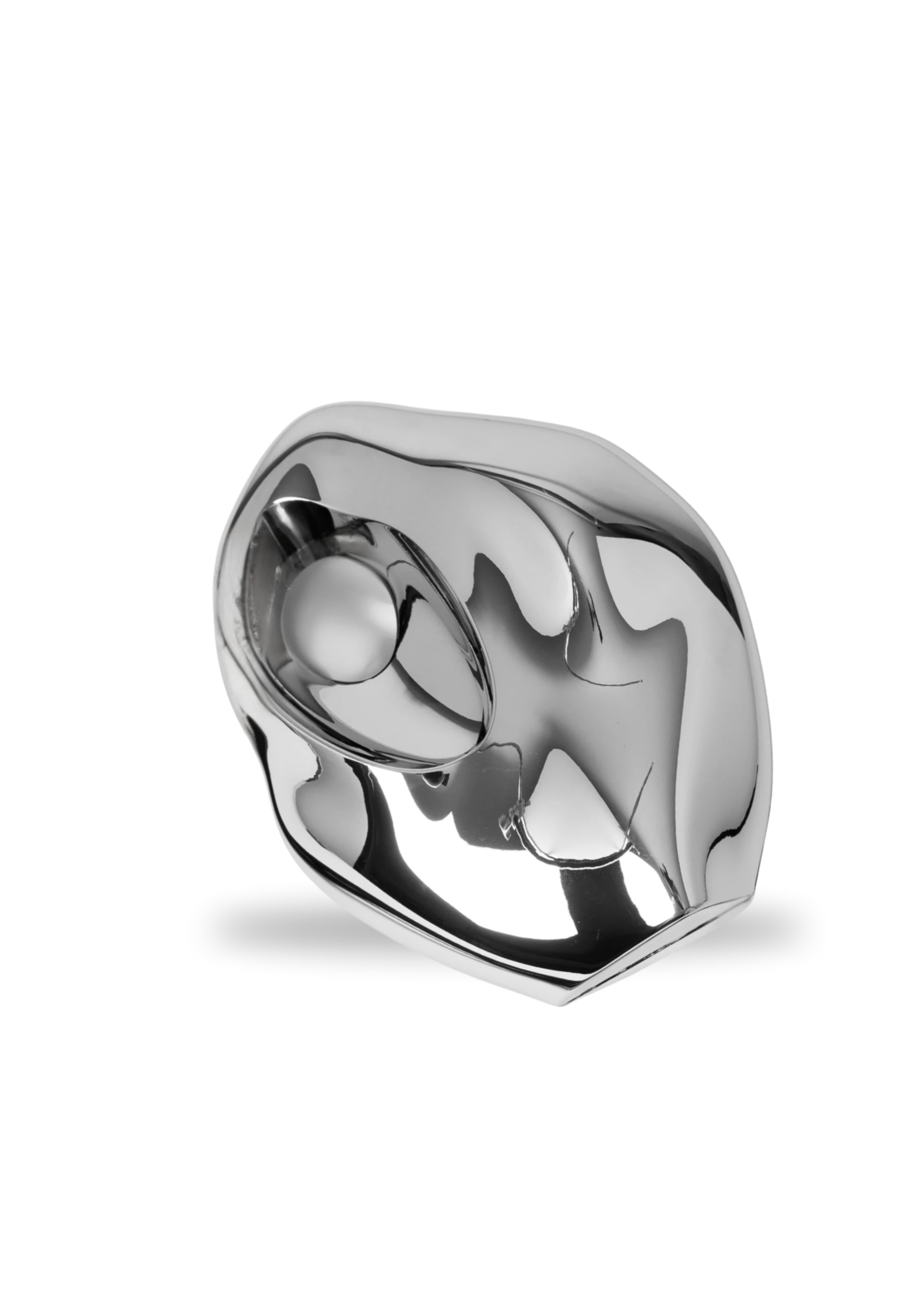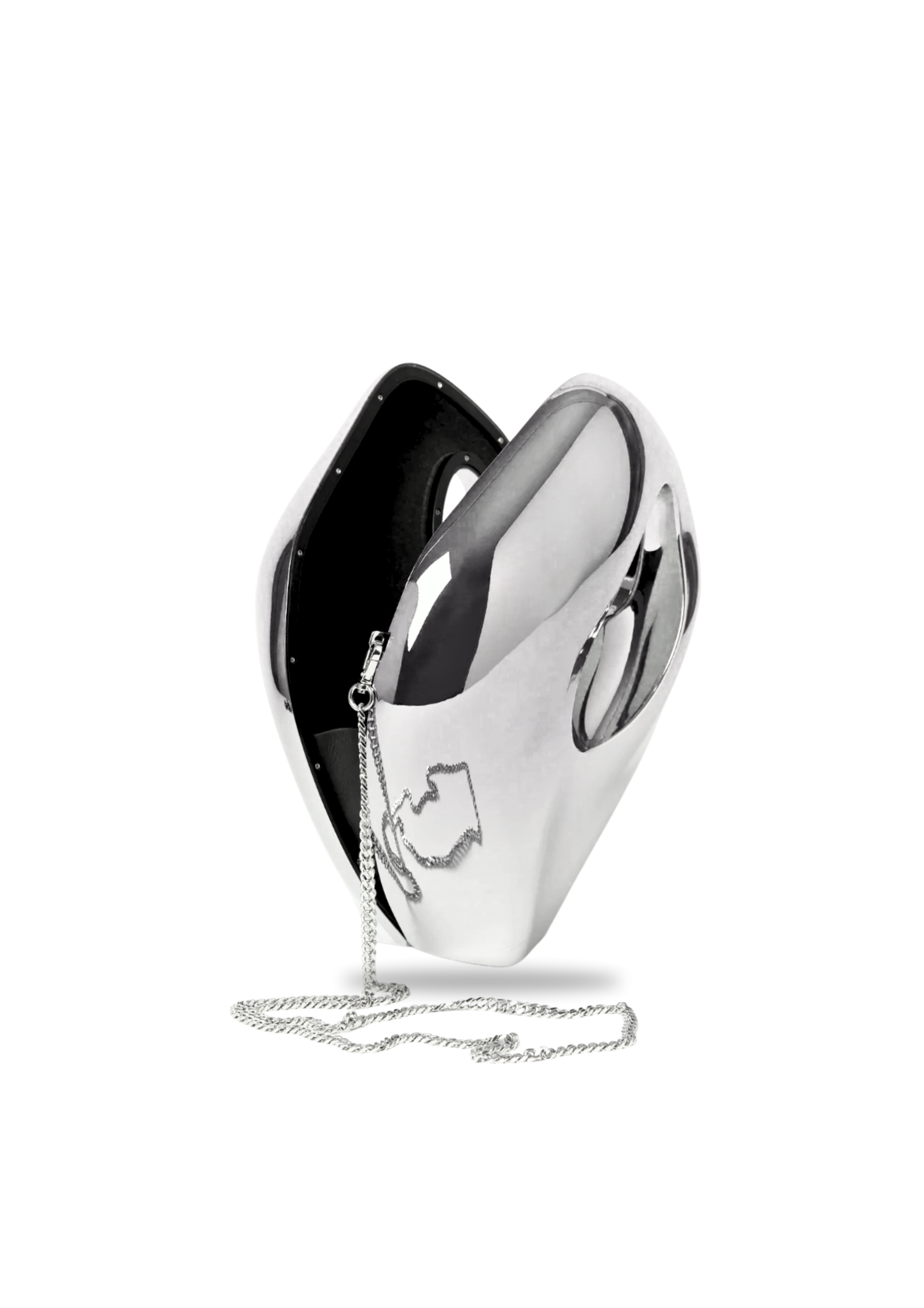 Sculptural, sleek & effortlessly futuristic — the Asteroid Bag is a showpiece designed for bold, modern expression. Crafted from high-gloss acrylic with a mirror-like chrome finish, its fluid silhouette and circular handle cutout make it as practical as it is artistic.