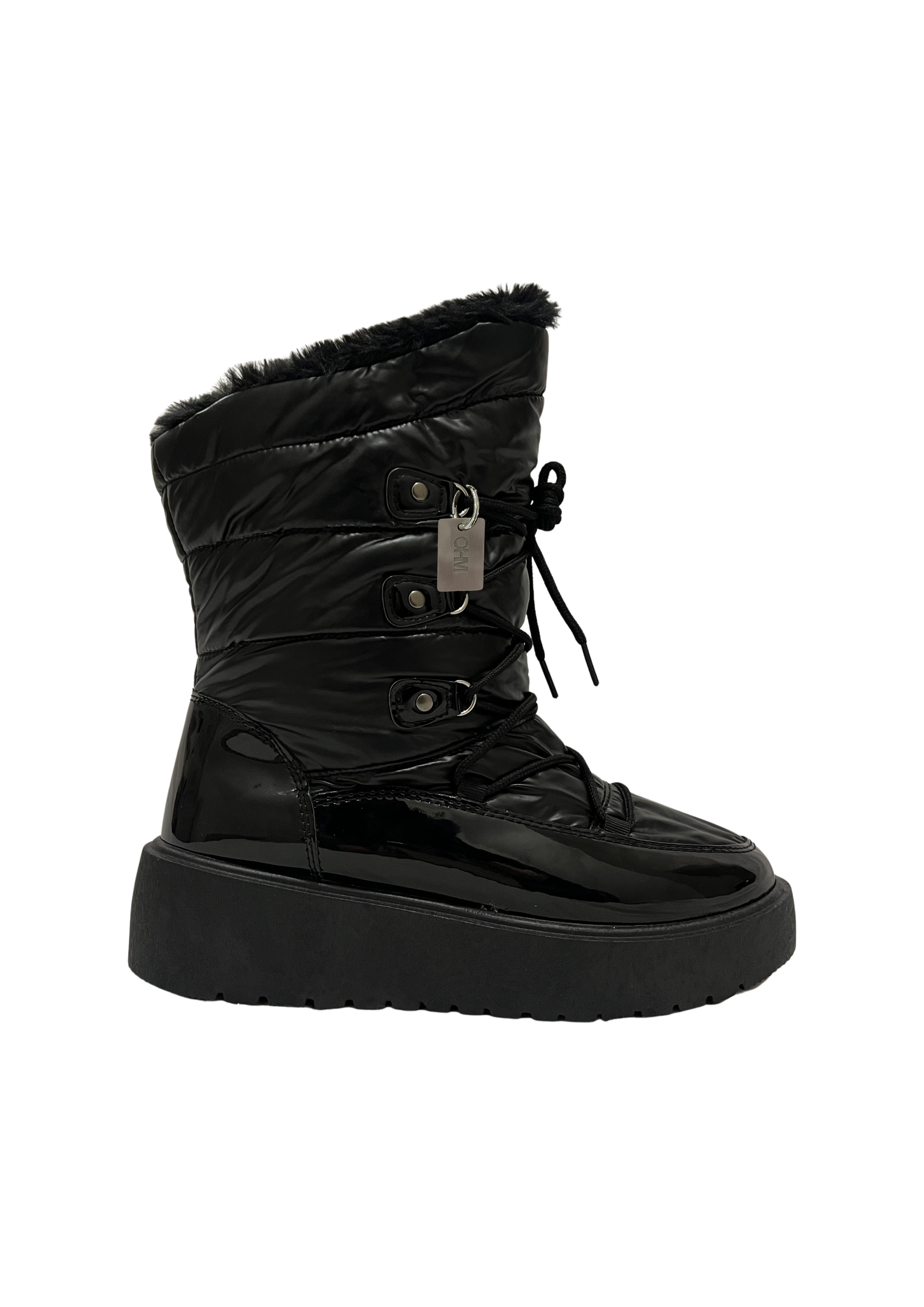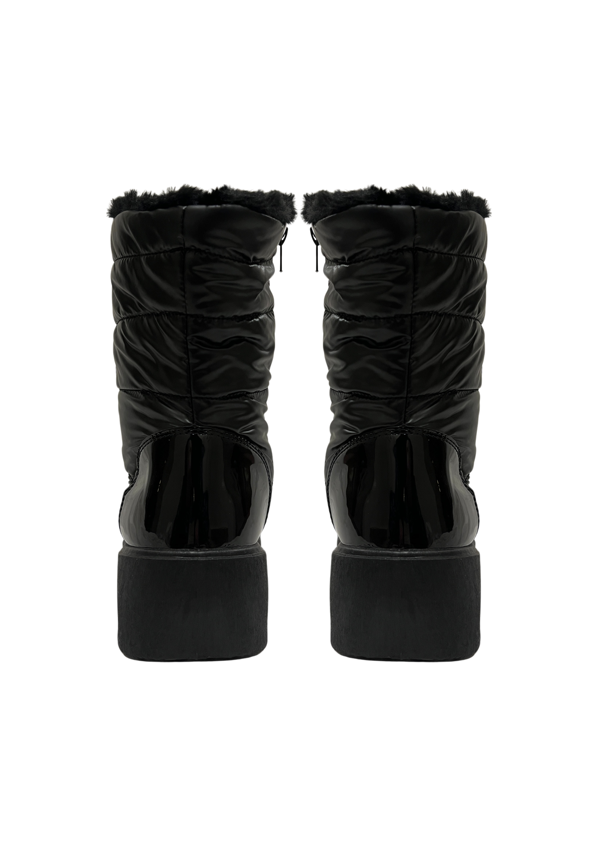 The LACE-UP PUFFER BOOTS are designed to blend comfort with edge, featuring a glossy finish and cozy faux-fur lining for warmth. The lace-up front and chunky rubber sole bring both function and statement energy — perfect for city strolls or chilly getaways.