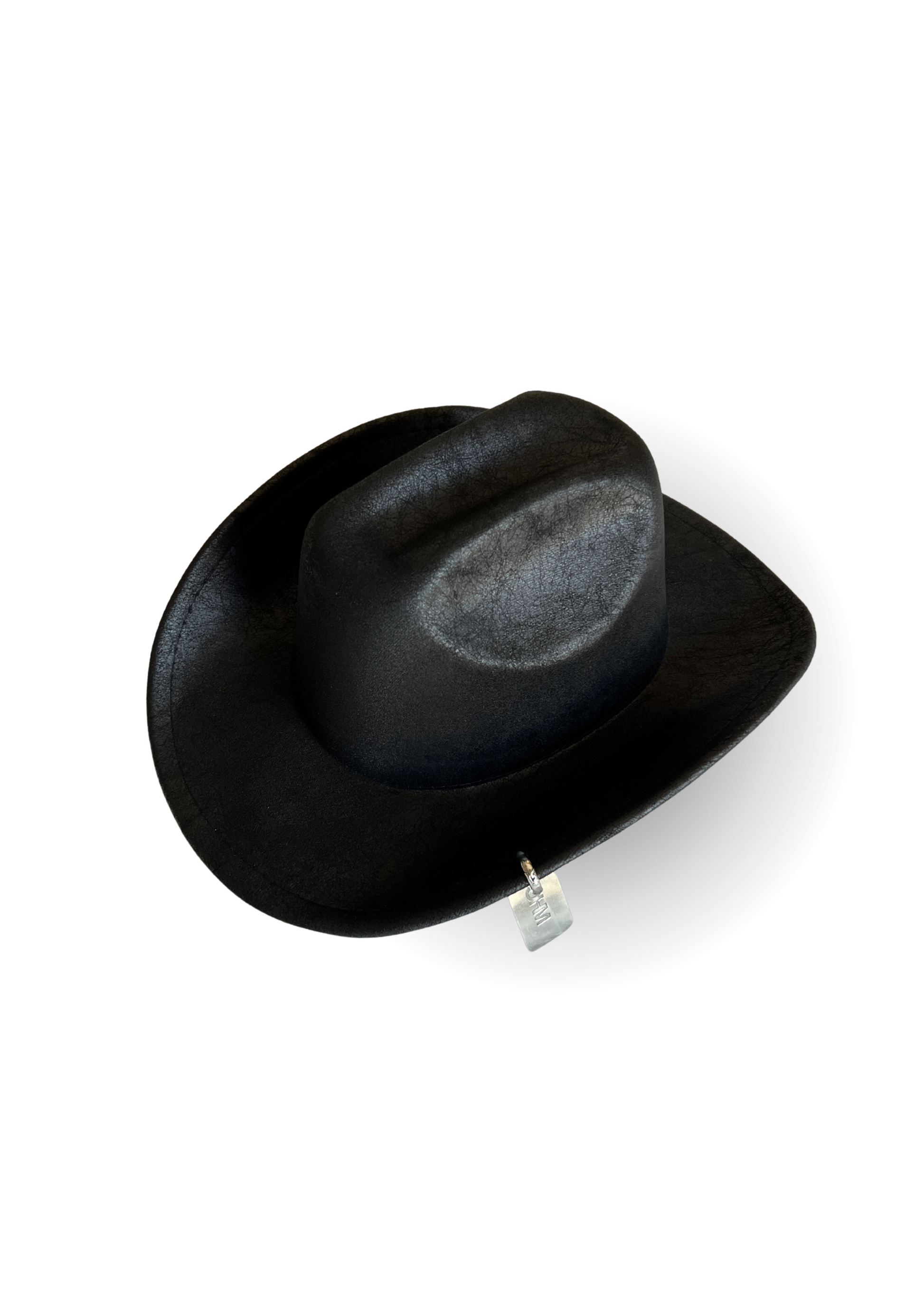 The OHM Rodeo Hat redefines western headwear with a monochrome matte finish and an iconic silver OHM tag accent. A piece designed to cut through any crowd. Its sculpted crown and curved brim evoke a modern cowboy spirit, reimagined through Ohmara’s lens of edge.